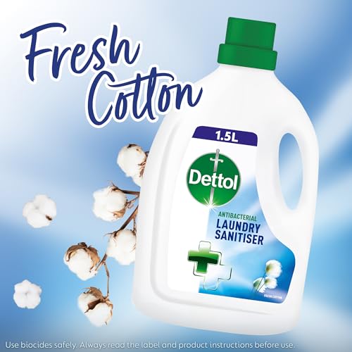 Dettol Laundry Sanitiser, Antibacterial, Fresh Cotton, 6L (1.5L x 4pck) 12hr Freshness, Hygienically Clean, Removes Odour, Kills 99.9 Percent of Bacteria