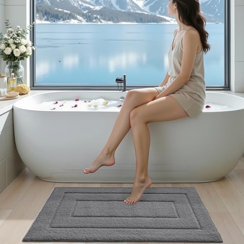 DEXI Bath Mat 40 x 60 cm, Extra Soft Absorbent Microfiber, Non-Slip Bathroom Mats, Machine Washable Rugs for Shower Floor, Grey