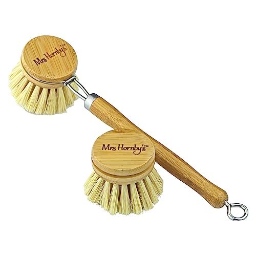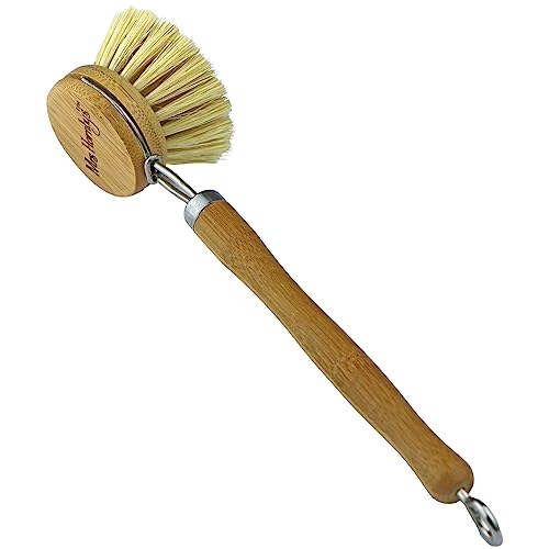 - Dish Brush made from Bamboo & Sisal for Scrubbing Pots Pans and Surfaces with Replacement Head & Steel Neck