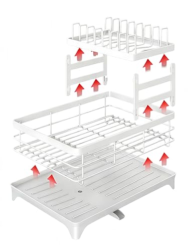 - Detachable top rack: This 2-layer dish drain rack includes a detachable top layer that can flexibly store dishes, cookware, and plates of various sizes. Our kitchen drying rack is perfect for use on sinks or countertops.