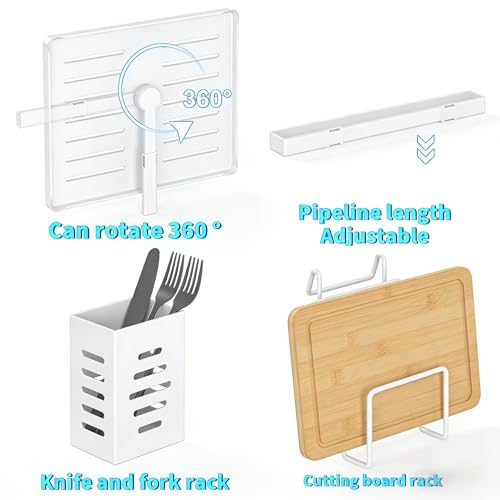 - Easy to assemble and clean: Our user-friendly design makes our dish rack easy to install, without the need for any tools. All parts of the dish rack can be disassembled and cleaned to avoid dirt and oil remaining in the gaps. This set includes: 1 bottom dish rack; 1 upper plate rack; 1 integrated tool cutting board rack; 1 cutlery rack, 1 drain board; 1 rotating nozzle; 2 connection frameworks.