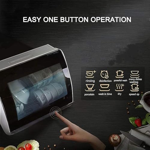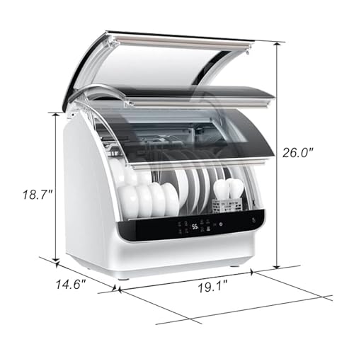 - COMPACT AND PORTABLE: This mini tabletop dishwasher is great for small kitchens, apartments, RVs, and boats. With its built-in 5-liter water tank, you don't need a hookup, making it convenient for any location. The space inside the dishwasher is big enough to fit 12-inch diameter dishes.