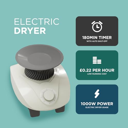 • Low Running Costs – Uses only 1kWh per hour, costing around £0.26 for 60 minutes (UK Price Cap, Oct 2025) – a money-saving alternative to bulky tumble dryers.