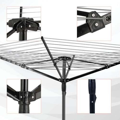 - 【Free Spike & Cover】Comes with a free metal ground spike. A safe and sturdy base provides better stability for the rotary dryer, and prevent the clothes airer from moving and tilting in inclement weather and strong winds. Folding the rotary airer and putting on this protective cover when not in use, Protect the rotary airer and prolong its life.