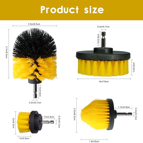 Drill Brush Cleaning Set – 4 Pack Power Scrubber Attachment for Car, Carpet, Floor, Bathroom, Toilet, Tub, Kitchen, Marble, Ceramic Surface