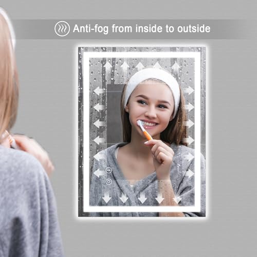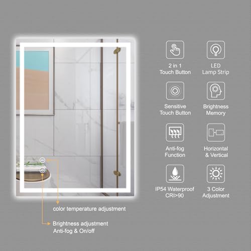 - 【Anti-Fog】This Bathroom Mirrors have defogger function, you can turn it on according to your needs, without worrying about the Mirror fogging interrupting your makeup or changing clothes. IP54 waterproof and moisture-proof LED provides safe lighting, very suitable for wet bathrooms or sinks.