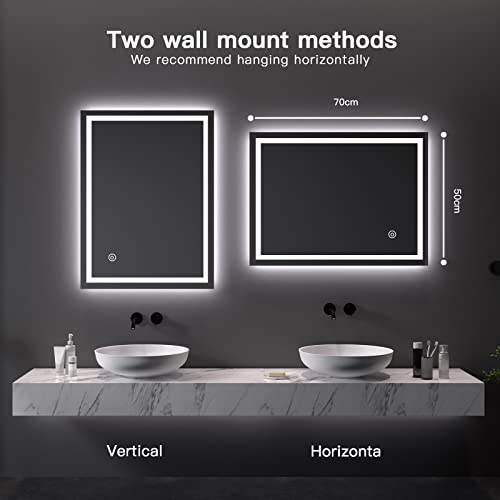 - 【Anti-fog Function】 The heating is switched on and off by the mirror lighting. The heat is continuously distributed across the mirror surface, preventing your bathroom mirror from fogging up.