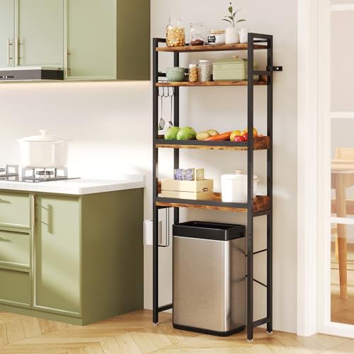 Dripex Bathroom Storage Shelf, 4-Tier Over The Toilet/Washing Machine Storage Unit, Adjustable Shelves, Freestanding Bathroom Laundries Shelves with Toilet Paper Holder, Hooks W67xD24xH173cm