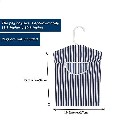 S & S PRODUCTS Peg Bag with Hanger, Easy Hanging Hook, Holds Up to 50 Pegs, Reusable, for Washing Line, Indoor/Outdoor (Blue-White)