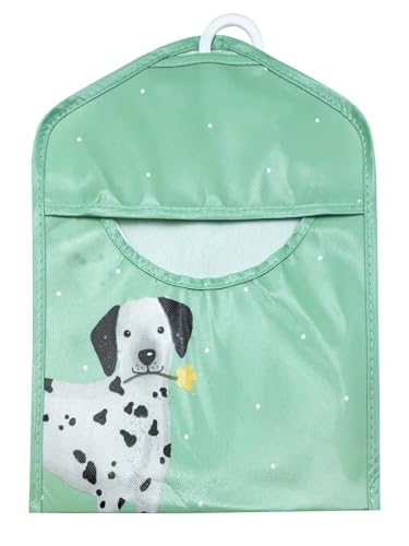 - The bag features an adorable dog design, available in two assorted styles, adding a touch of fun and personality to your laundry routine. The waterproof coating ensures durability and protection from moisture, making it perfect for both indoor and outdoor use. The built-in hook allows for easy hanging on a clothesline, laundry rack, or even a hook in your laundry room, ensuring your pegs are always within reach
