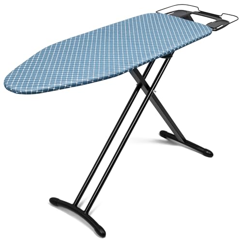 Duwee Extra Wide Large Ironing Board, Deluxe Ironing Board with Steam Iron Rest, Heat Resistant Cover and Thicken Felt Pad, Heavy Sturdy Legs, 117 x 43 cm, Blue Plaid