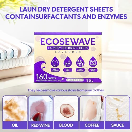 EcoseWave Laundry Detergent Sheets, 160 Sheets, Lavender Scent, Hypoallergenic and Eco-Friendly, Perfect for Travel, Camping, Apartments, Dorms