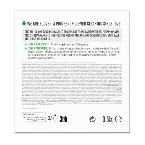 Ecover Zero Dishwasher Tablets, Contains Salt & Rinse Aid, Powerful Cleaning, Pack of 1, 25 Tablets