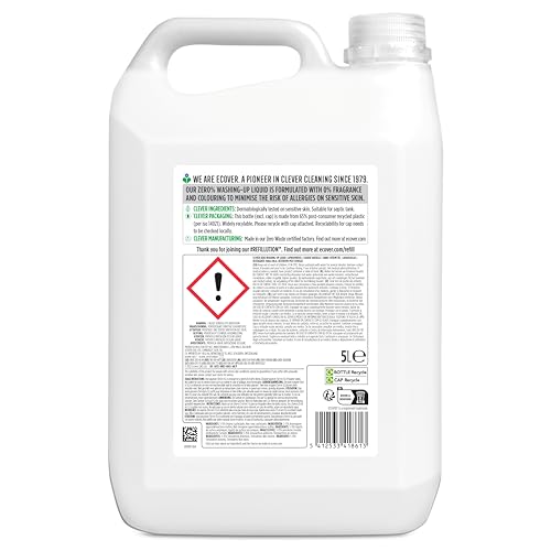 Ecover Zero Washing Up Liquid Refill, Washing Up Soap, Tough on Grease and Grime, Dermatologically Tested, 1 x 5L
