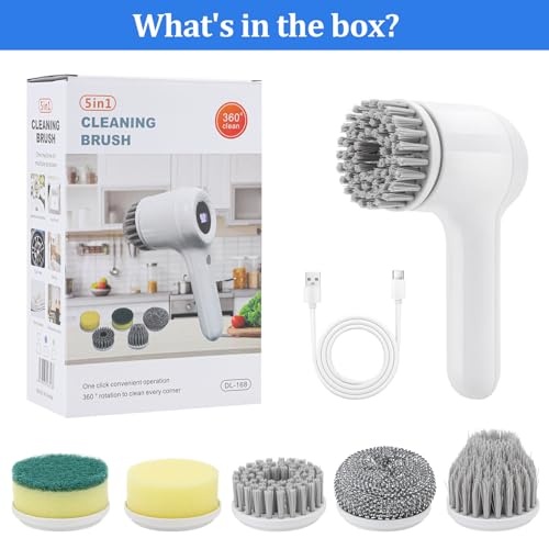 - 🧹【With 5 Cleaning Brush Head】Equipped with five interchangeable brush heads – including a nylon brush, corner brush, wire brush, sponge brush, and cleaning pad – this portable electric cleaning brush caters to all your cleaning needs. Find the perfect fit for any task, making it a daily essential for everyone.