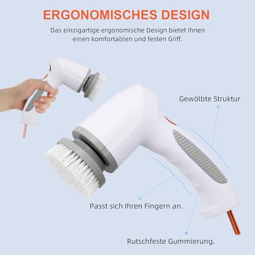 - ERGONOMIC DESIGN & IPX7 WATERPROOF The cleaning brush combines IPX7 water protection with non-slip handle design for secure grip. With this scrubber, you can always keep your hands away from dirt and irritating chemicals – a real household helper.