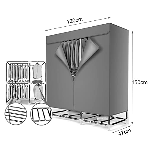 - Wardrobe Size: Small – 72*45*145cm, Load 30kg; Large – 120*47*150cm, Load 40kg. 2 materials are available: black iron tube or silver stainless steel tube, the stainless steel tube has better rust and moisture resistance.