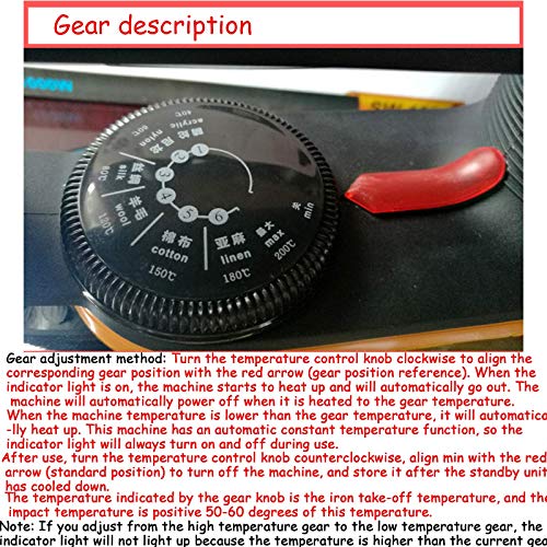- Independent switch with six-speed temperature adjustment: Tailor your ironing experience with customizable temperature settings suitable for various fabrics and ironing positions, allowing you to easily manage different materials.