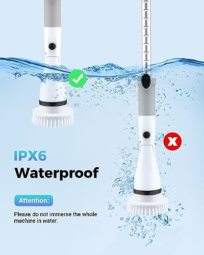 - Portable Electric Spin Scrubber – The cordless spin scrubber can last continuously up to 1.5 hour after only 3.5 hours fast charging. meets your need of long working duration to clean and wipe the dirt thoroughly without interruption.(The actual working time depends on the cleanliness of the area. For cleaning stubborn stains, if you press the brush to clean, the use time will be shortened.