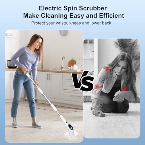 - [Convenient & Effective Cleaning Tool] With this electric spin scrubber you can clean your entire house at once. Powerful scrubbing motor for deep cleaning. The internal motor drives the rotating brush head, which rotates at high speed and works in conjunction with a cleaning agent to quickly remove stubborn stains and leave the tile floor looking like new