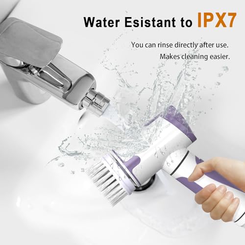 • Lightweight&Waterproof: The electric scrubbing brush weighs approximately 1 lb. It will not strain your arms during cleaning. The ergonomic design of the handle angle makes it comfortable for you to use.The IPX7 rated waterproof technology allows the machine to run underwater for up to 30 minutes at a depth of 1 metre. You don't have to worry about water splashing on the machine during use. It is also easier to clean the machine.