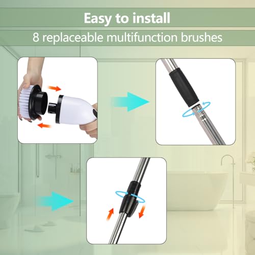 - 8 Multifunctional Brush Heads: The electric scrubber comes with 8 interchangeable cleaning brush heads, ideal for tackling tough stains and grouts in bathrooms and kitchens, including tubs, tiles, sinks, stoves, and countertops.