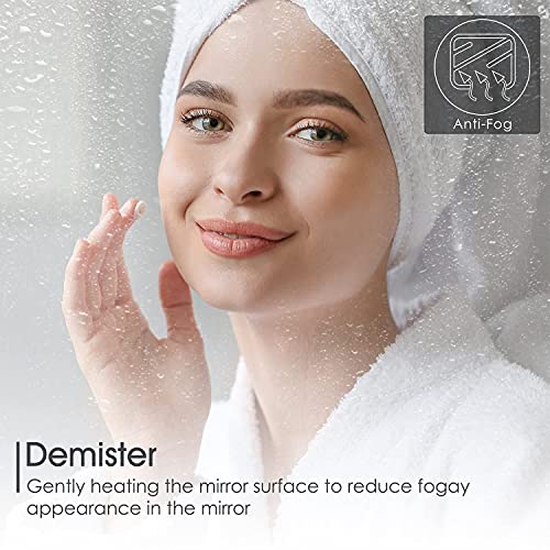 • 【Anti-Fog & Shaver Socket】ELEGANT bathroom mirror features an anti-fog function with a separate control button. Its defogger film heats up rapidly to ensure a clear reflection at all times. Additionally, it includes a built-in shaver socket in the lower right corner for charging shavers, electric toothbrushes, and other low-power, two-pin devices.