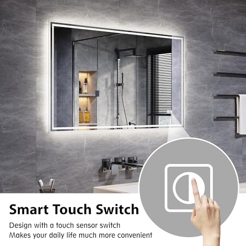 - Touch Switch & Demister Pad: Large bathroom mirrors touch switches control lighting and anti-fog separately, the defogger film will heat up quickly when you turn on the defog switch