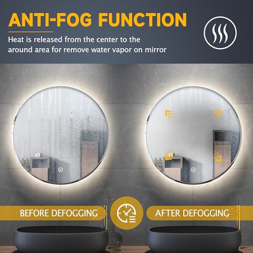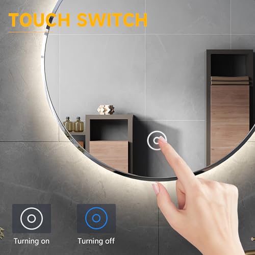 - 【Touch Switch & Anti-Fog】 Bathroom mirror touch switch controls both the LED lighting and the defogger, the defogger film will heat up quickly when you turn the mirror on via touch sensor, no need to wipe the led mirror after a shower anymore, it will be clearly reflected at all times