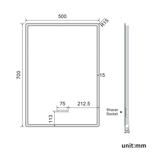 - 【Shaver Socket】Independent shaver socket eqquiped with dual plugs, located on the lower right corner of the mirror which can be charged with shavers, toothbrushes and other low power appliances, etc