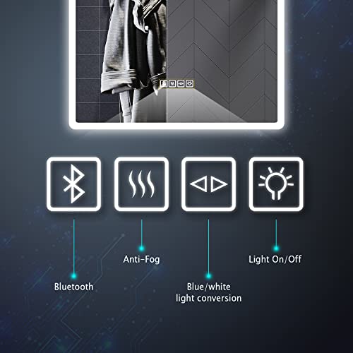 - 【Blue Atmosphere Light】Blue LED light gives off soothing soft light for helping ease and comfort, just a simple tap of the touch switch to switch among blue light and white light. A fashion modern LED mirror, adds luxury to your bathroom
