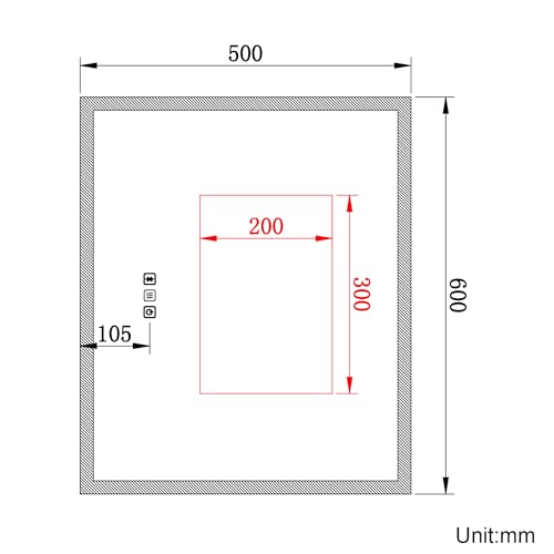- Shaver Socket: Bathroom Mirror with shave socket eqquiped with dual plugs, with isolated transformer function located on the right corner of the mirror which can be charged with shavers, toothbrushes and other low power appliances, etc