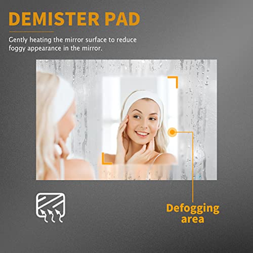 - Built-In Anti-Fog: lilluminated mirror contains a demister pad that automatic keeps the stream free and heating up mirror prevents condensation and reduce foggy appearance rapidally, so that demisting the mirror surface effectively