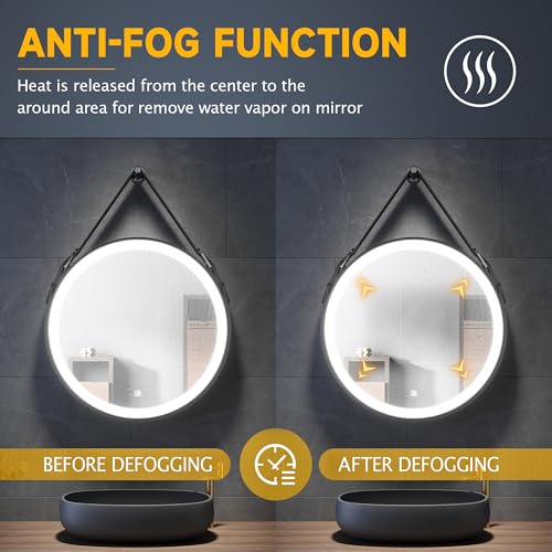 • 【Excellent Craftsmanship】ELEGANT led bathroom mirror made of premium 4mm HD environmental friendly copper-free silver glass with 35mm black frame, high-quality leather strap and metal knob, enhance the fashion, decoration and stability of the led vanity mirror