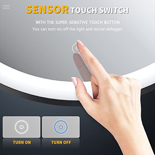 • 【Anti-fog & Waterproof】This round bathroom mirror with lights is IP44 waterproof with defogging function. No need to wipe the led mirror after a shower anymore, it will be clearly reflected at all times