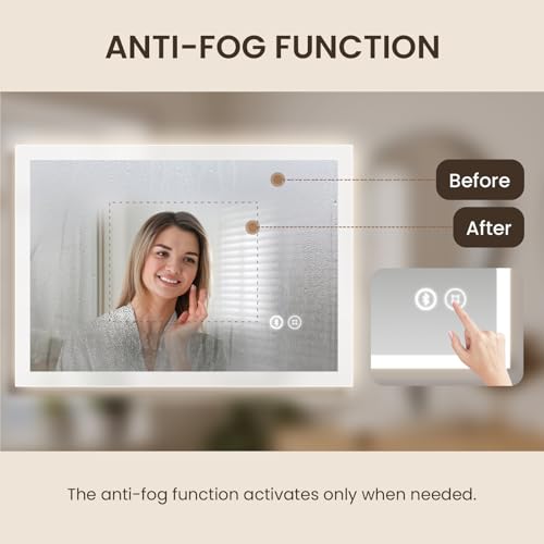 - 【Bluetooth Speaker】Our smart bathroom mirror features an integrated Bluetooth 4.1 speaker with dual-channel stereo for 360-degree surround sound. Easily connect your smartphone to stream music, enhancing your shower experience without risking water damage to your device.