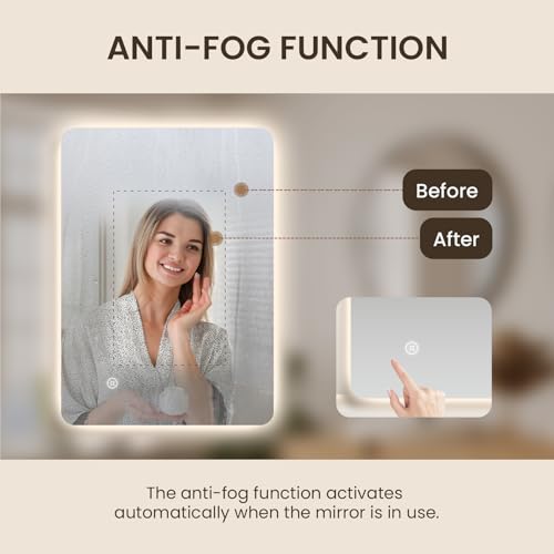 - 【Touch & Anti-Fog】Stay clear after hot showers with this illuminated bathroom mirror. A simple touch controls both the LED lighting and anti-fog function, ensuring a mist-free surface for grooming or skincare routines.