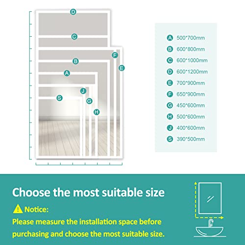 • Demister Pad – Starting anti-fog function immediately when you turn on the touch button, it need 5-10 minutes to clear this led bathroom mirror completely, safe and energy-saving, so open this function in advance before you use it(May need more time in Winter).