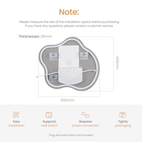 - 【Wall Mounted Vanity Mirror】The cloud-shaped LED bathroom mirror stands out with its unique appearance design, which contrasts sharply with traditional mirrors. This unique look brings a fresh and modern feel to the bathroom, adding a pop of color to the space.