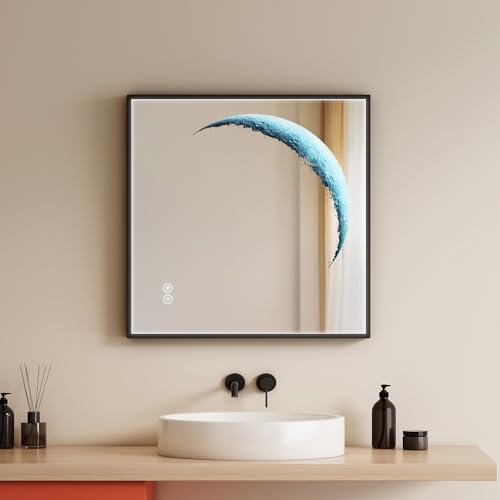 Be the first to review “EMKE Moon-Inspired Bathroom Mirror with LED Lights, 50 x 50 cm Illuminated Bathroom Mirror Wall Mounted with Demister Pad, Square Bathroom Mirror with Lights, Black Frame, Horizontal/Vertical”