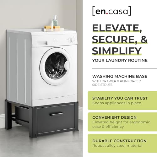 ![[en.casa] Washing machine base with drawer rubberised feet Washing machine base plinth max. up to 150kg steel pedestal 63x54x31cm black - Image 3](https://m.media-amazon.com/images/I/514ecko9fKL._SL500_.jpg)