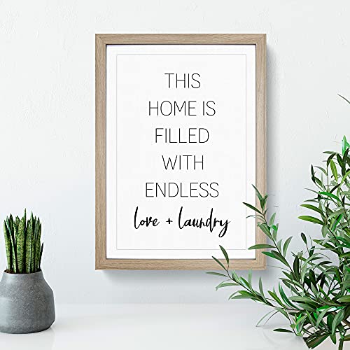 Endless Love And Laundry Typography Framed Wall Art Picture Print – Canvas Painting – Modern Home Décor Poster – Ready to Hang for Living Room Bedroom Kitchen – Oak A3 (36 x 48 cm)