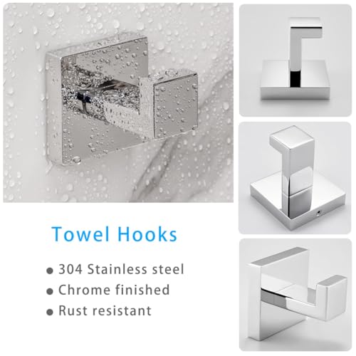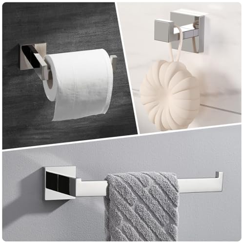 Eovem 4 Pieces Bathroom Accessory Set Square, Wall Mounted Towel Rail Towel Rack, Toilet Paper Holder, Towel Hooks, Stainless Steel Bathroom Hardware Set Polished Chrome