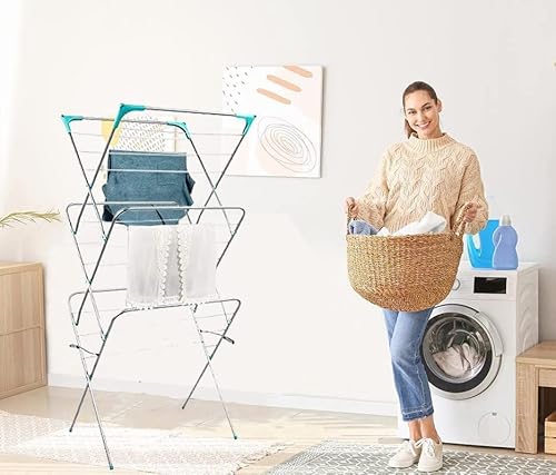 - LARGE 3-TIER CAPACITY – Enjoy ample drying space on this 3-level clothes airer. The expansive design offers up to 18m of drying room, allowing you to dry more laundry at once. No more waiting for clothes to dry in batches – get everything done in one go. Plus, air-drying your clothes saves time and cuts energy costs compared to using an electric tumble dryer.