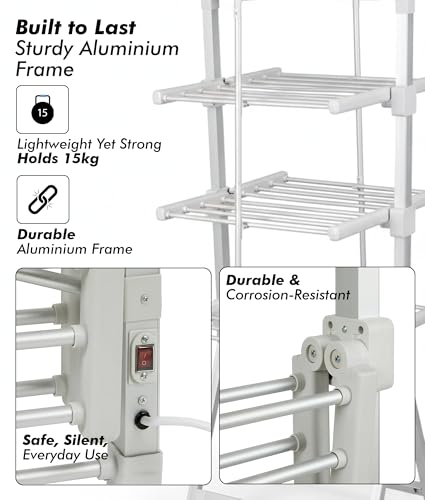 - Energy-Efficient & Silent — gentle, even heating dries laundry indoors without noise or high energy use.
