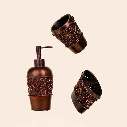 - BEAUTIFUL DESIGN: This bronze finish bathroom accessory set features a classy timeless design pattern on all its pieces, that will lift the look of your bath.