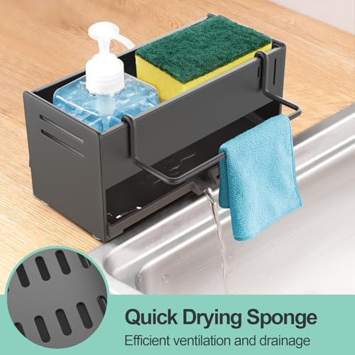 - Multi-Functional Design: The kitchen organiser is not only for storing sponges but also for holding dishcloths, cleaning brushes, soap, and other kitchen cleaning supplies, helping you keep your kitchen tidy and organized.
