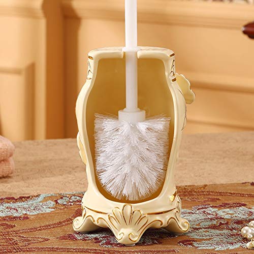 European Toilet Brushes and Holders Ceramics Cleaning Toilet Bowl Brush Set Bathroom WC Loo Brush Bathroom Accessories (Color : Gold)