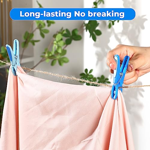 Fabsome Pegs for Washing Line Pack of 44, Non Slip Soft Grip Strong Clothes Washing Pegs, Long Lasting Plastic Laundry Pegs with Rubber Pad (Blue, 44 Pcs)