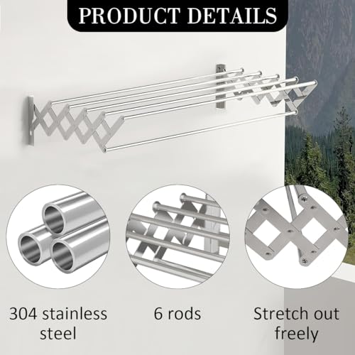 - Foldable Clothes Airer Wall Mounted Clothes Rail Retractable Towel Holder Bathroom Towel Rack Extendable Clothes Drying Rack Indoor